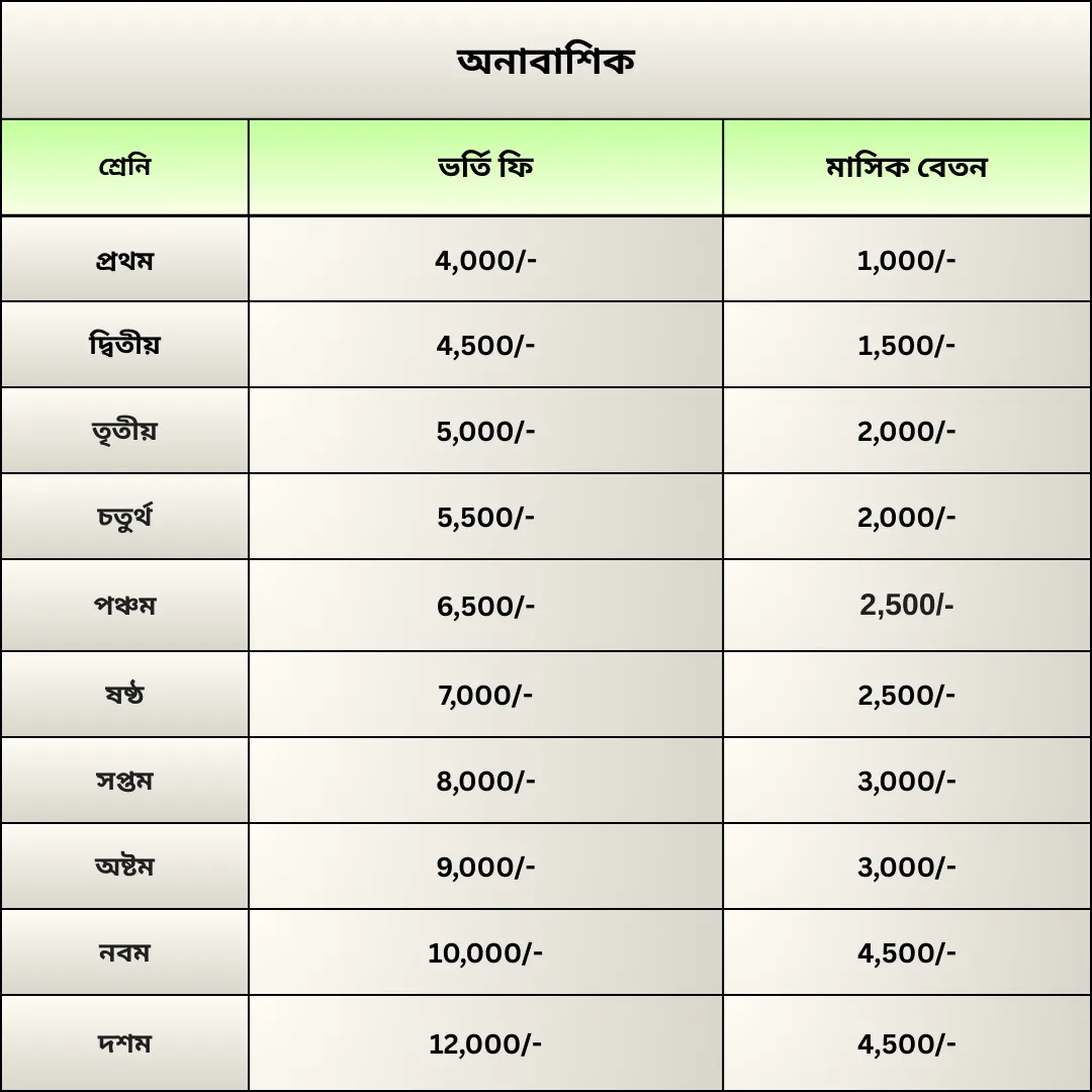 জাতি, ধর্ম, বর্ণ নির্বিশেষে সমাজের সকল শ্রেণীর ছাত্র-ছাত্রীদের ভর্তির ব্যবস্থা রয়েছে।